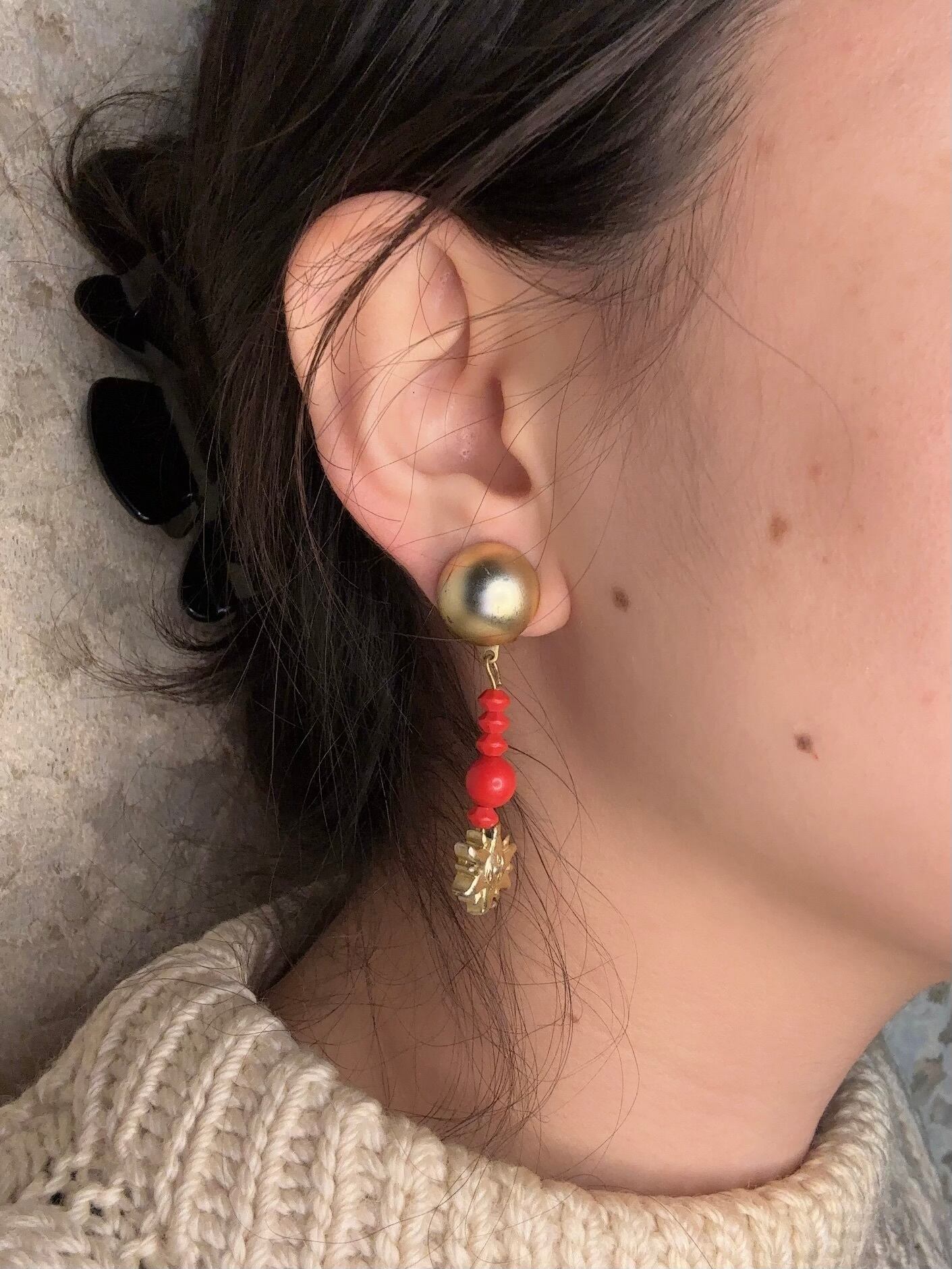 こっくりとした赤色とゴールドのパーツの組み合わせでちょっぴりサーカスのような世界観のある逸品です。