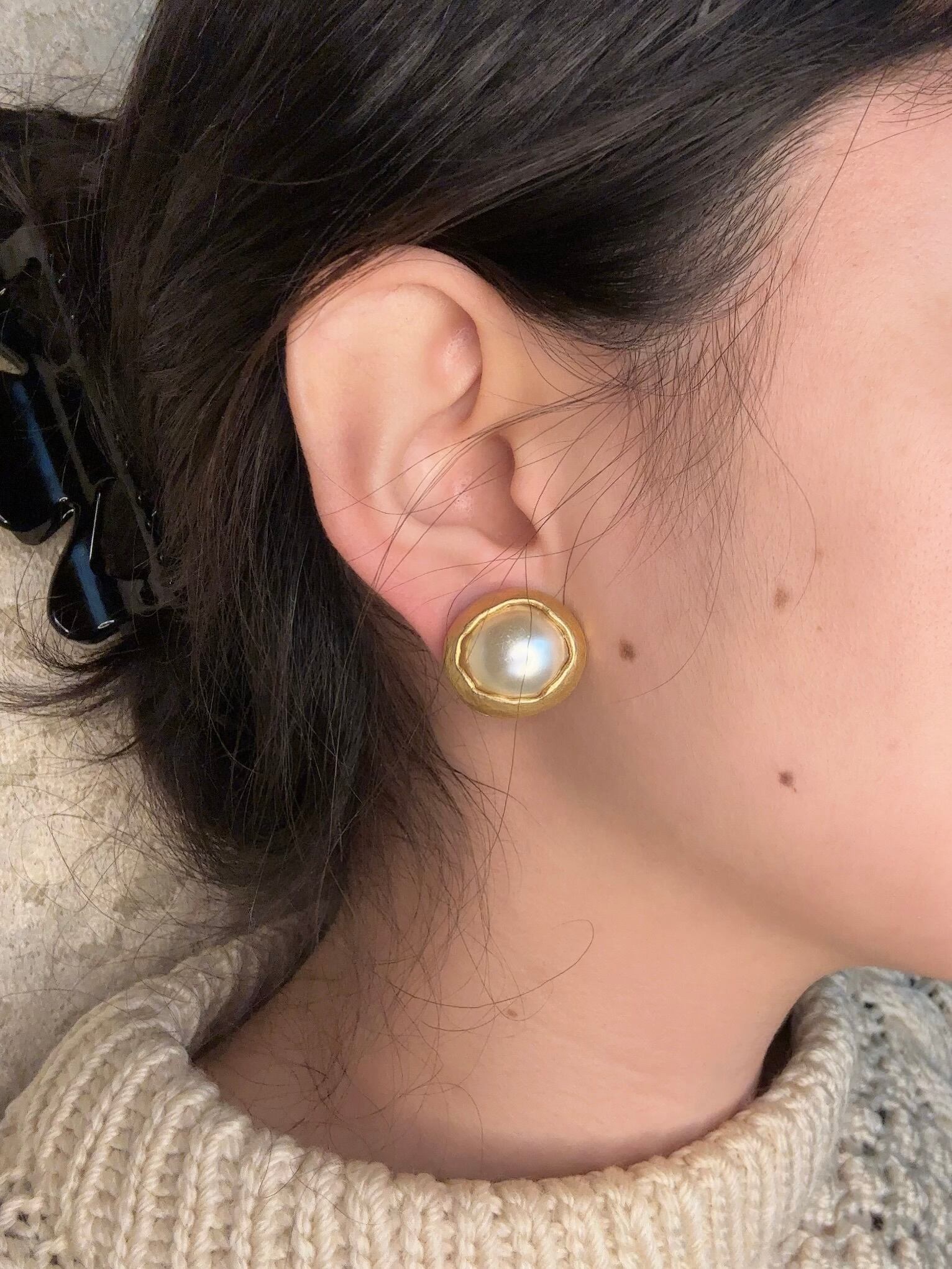 Paris蚤の市のお友達のショップで見つけた個性的なデザインが魅力のヴィンテージゴールドイヤークリップ。