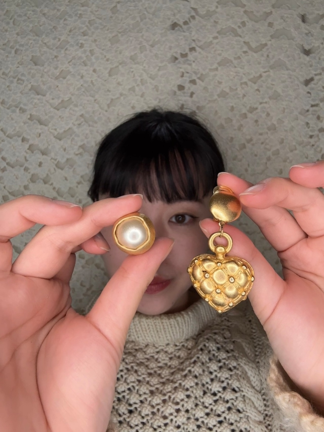 受け継がれるうちに片方だけになってしまったイヤリングの寄せ集めの中から、質感や雰囲気を見てセットになりそうなものを選んで左右違いのペアにしました☺︎