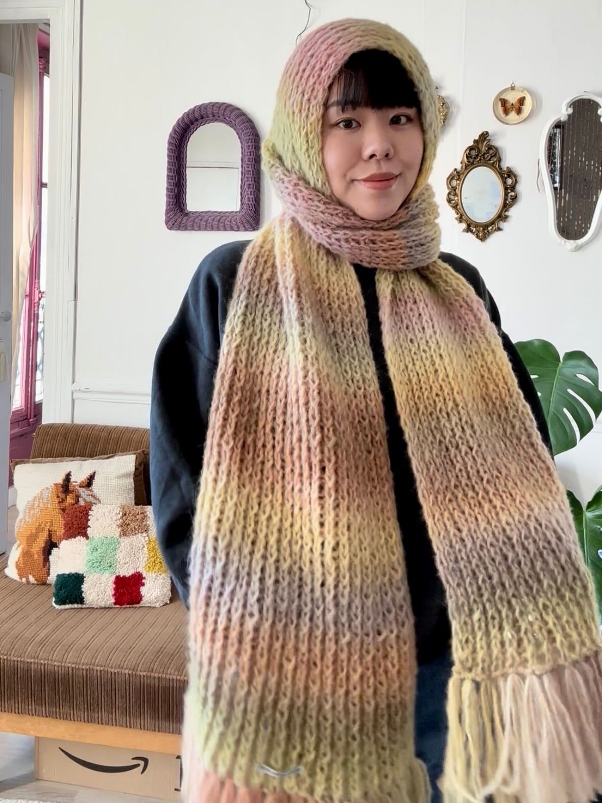 【EN】Super voluminous hand-knitted scarf that is over 270cm long! You can freely wrap it in the way you like ♡