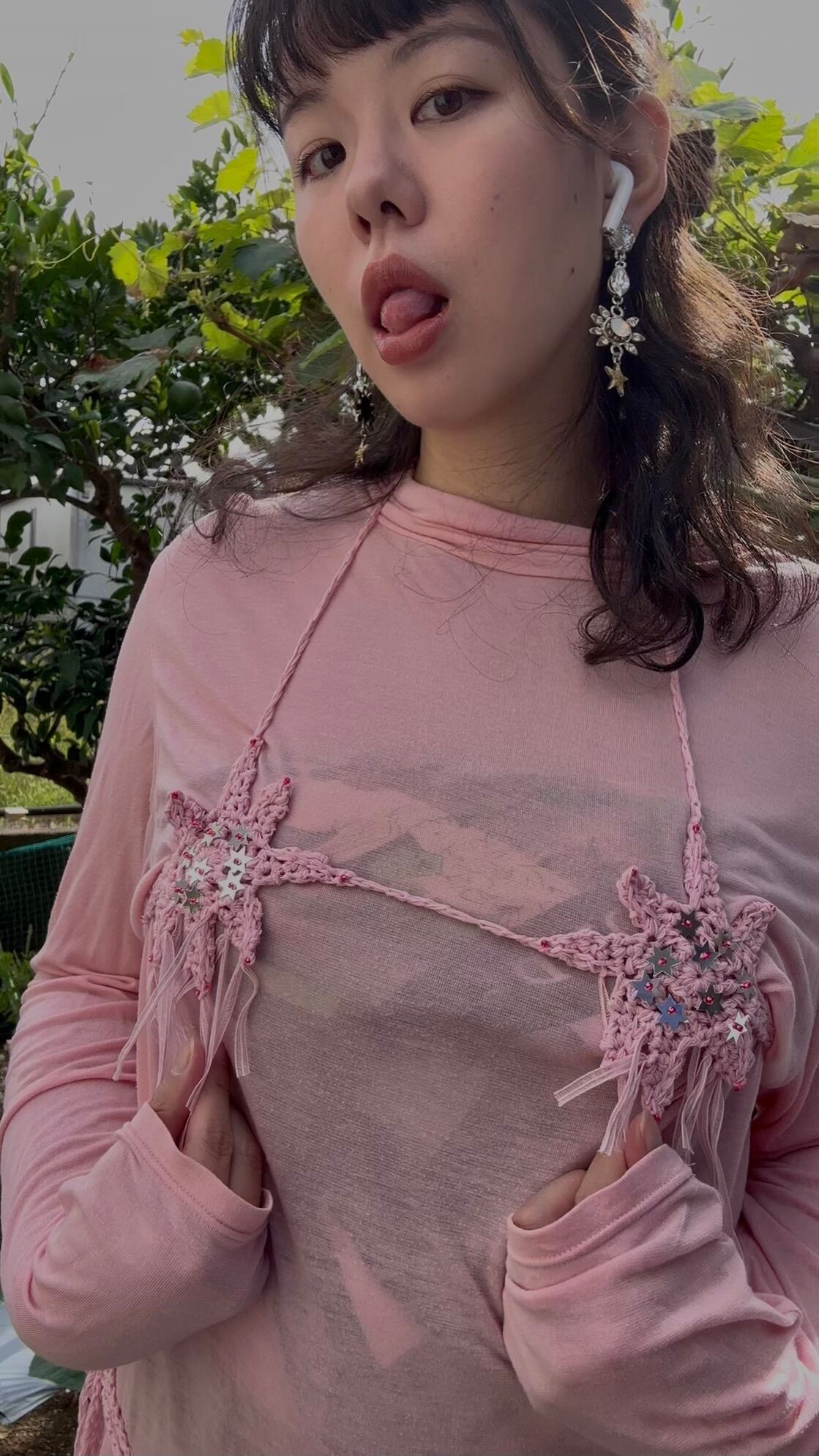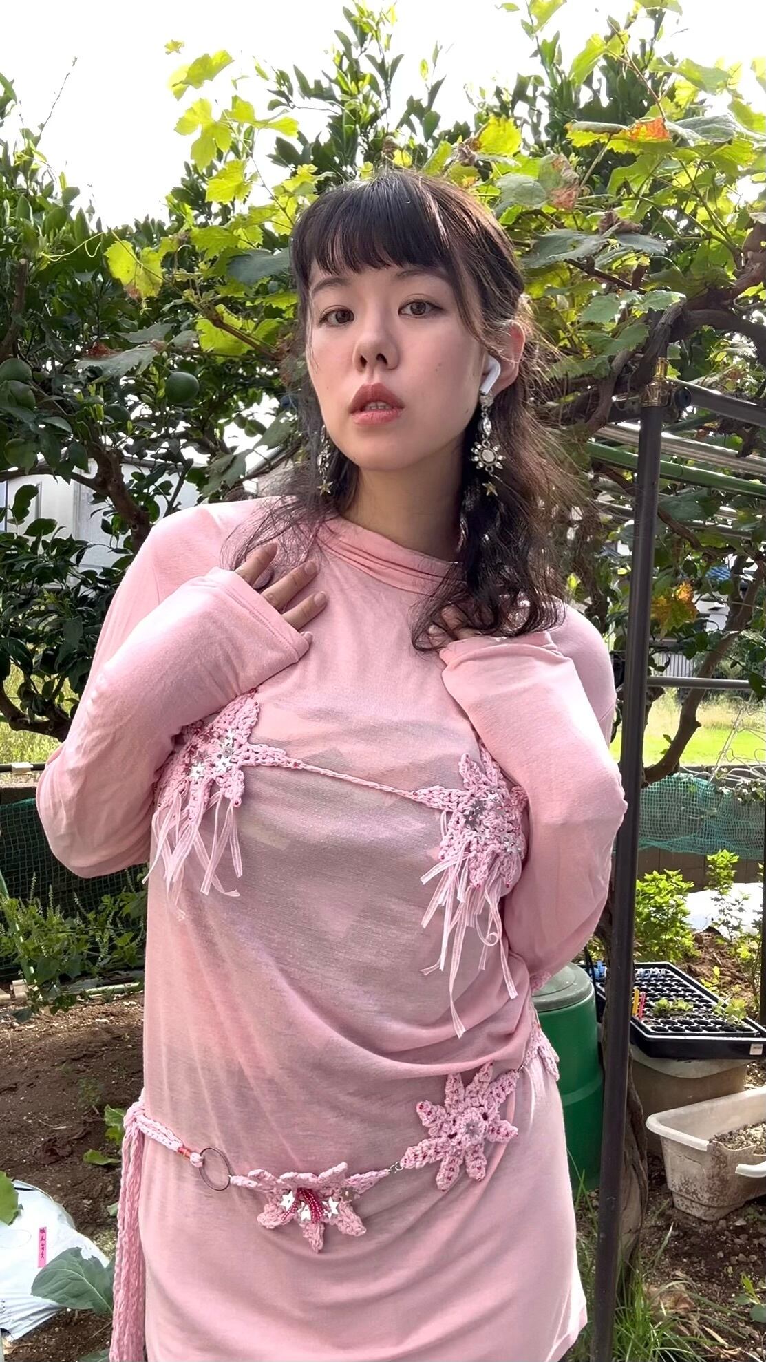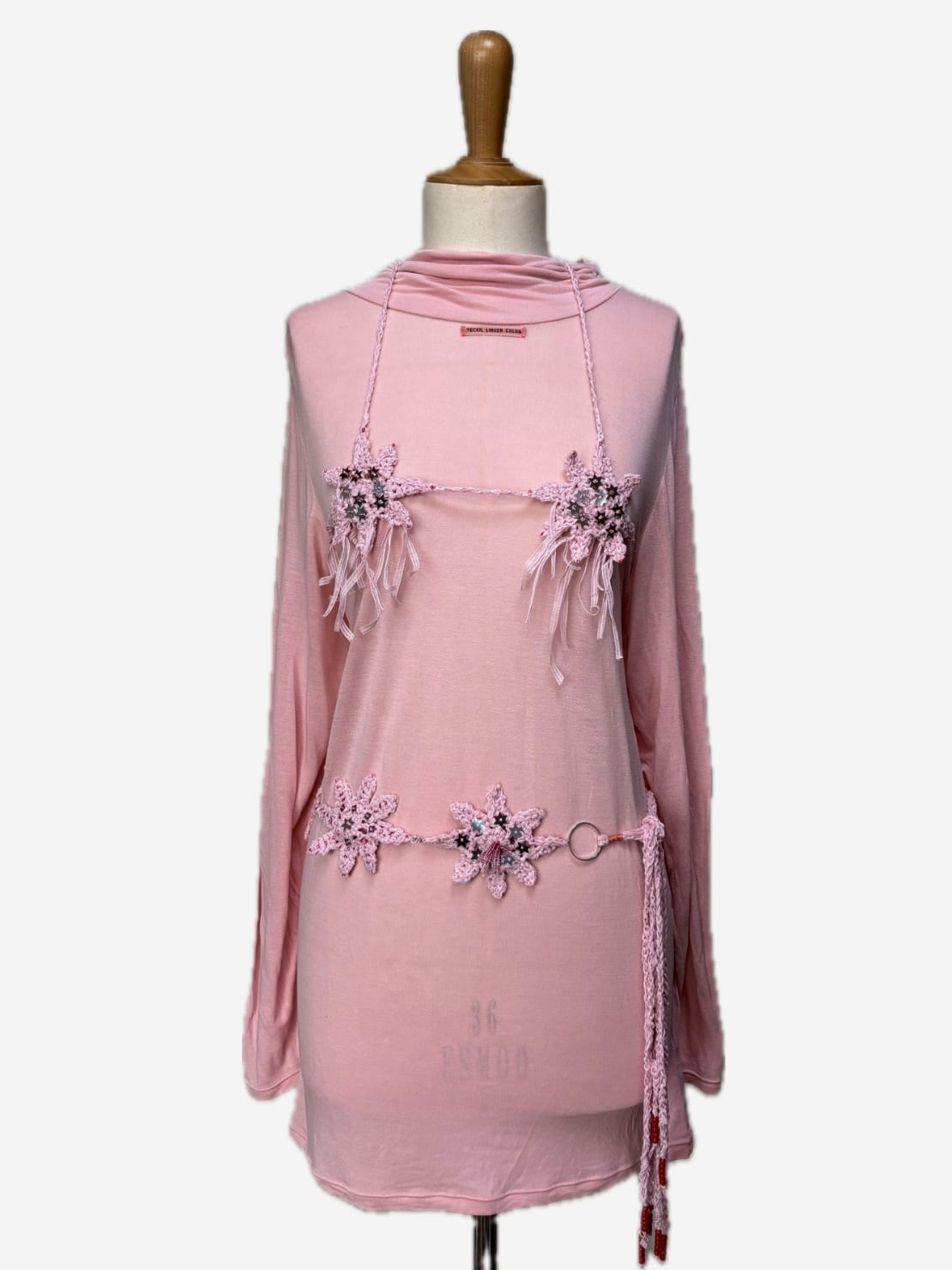 透け感のあるピンクのトップスをベースに、"流れ星"と"ウェスタンガール"をイメージにアレンジした作品です。