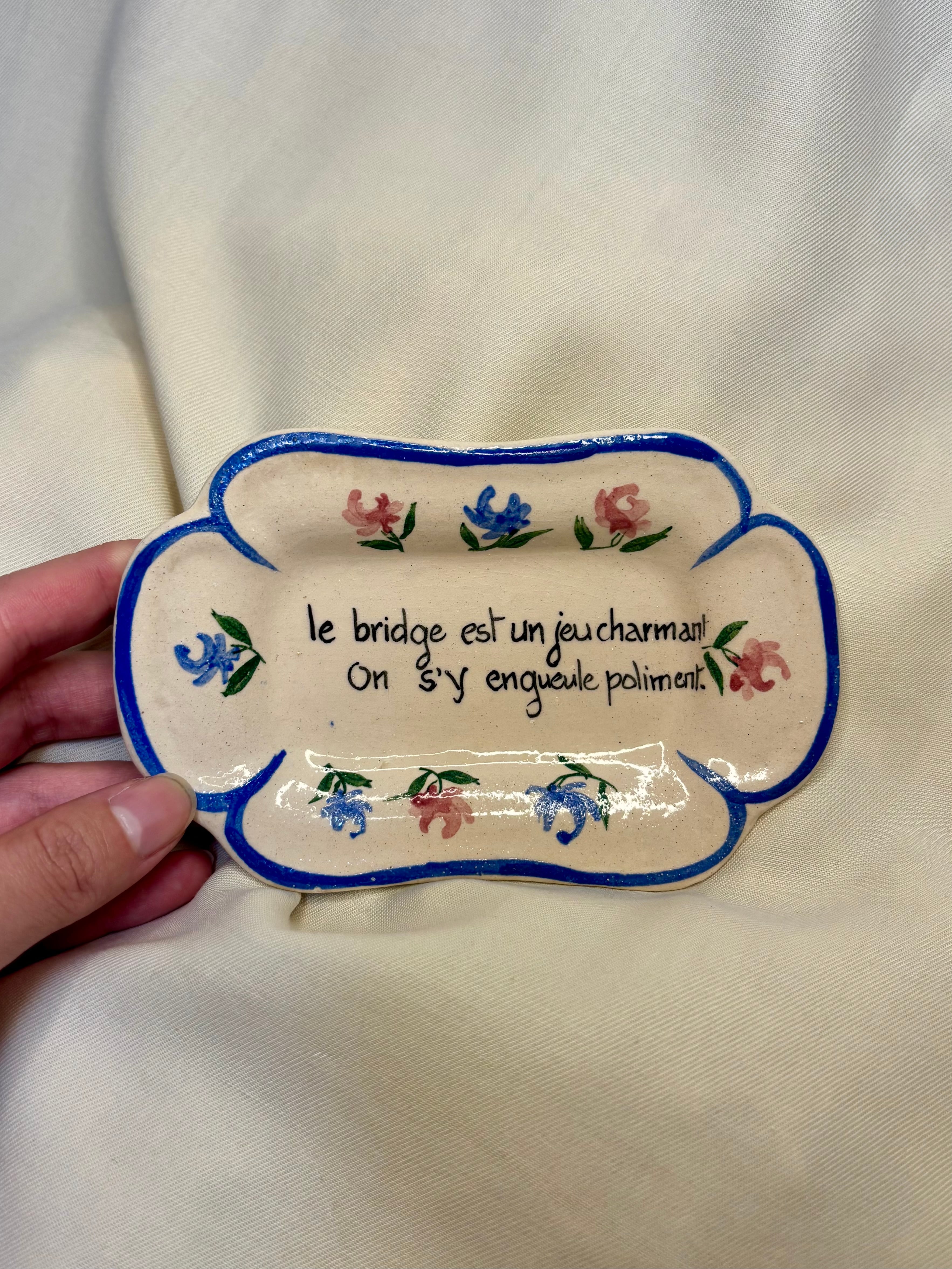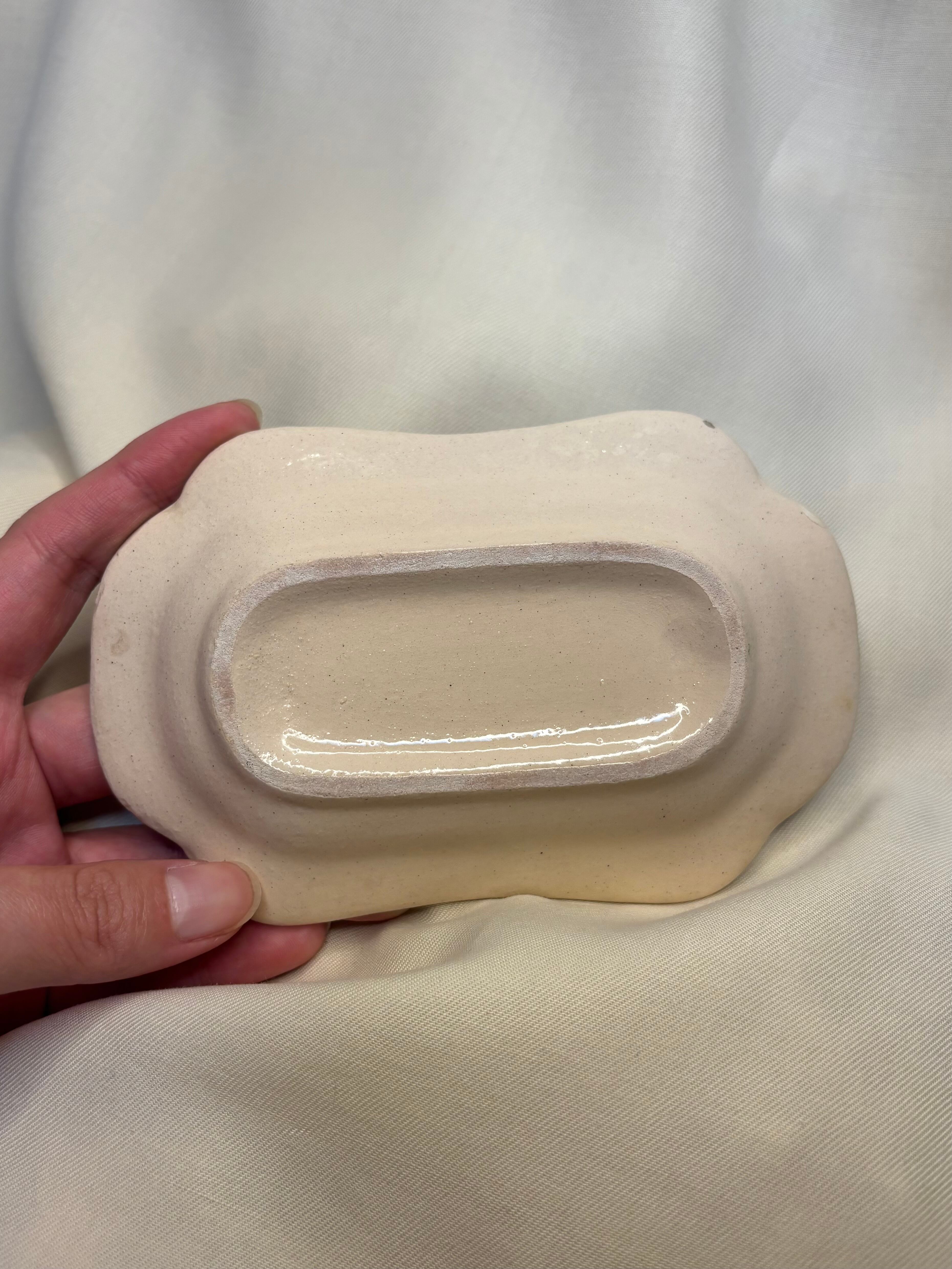 パリのブロカントで見つけた手のひらサイズの陶器製トレー。