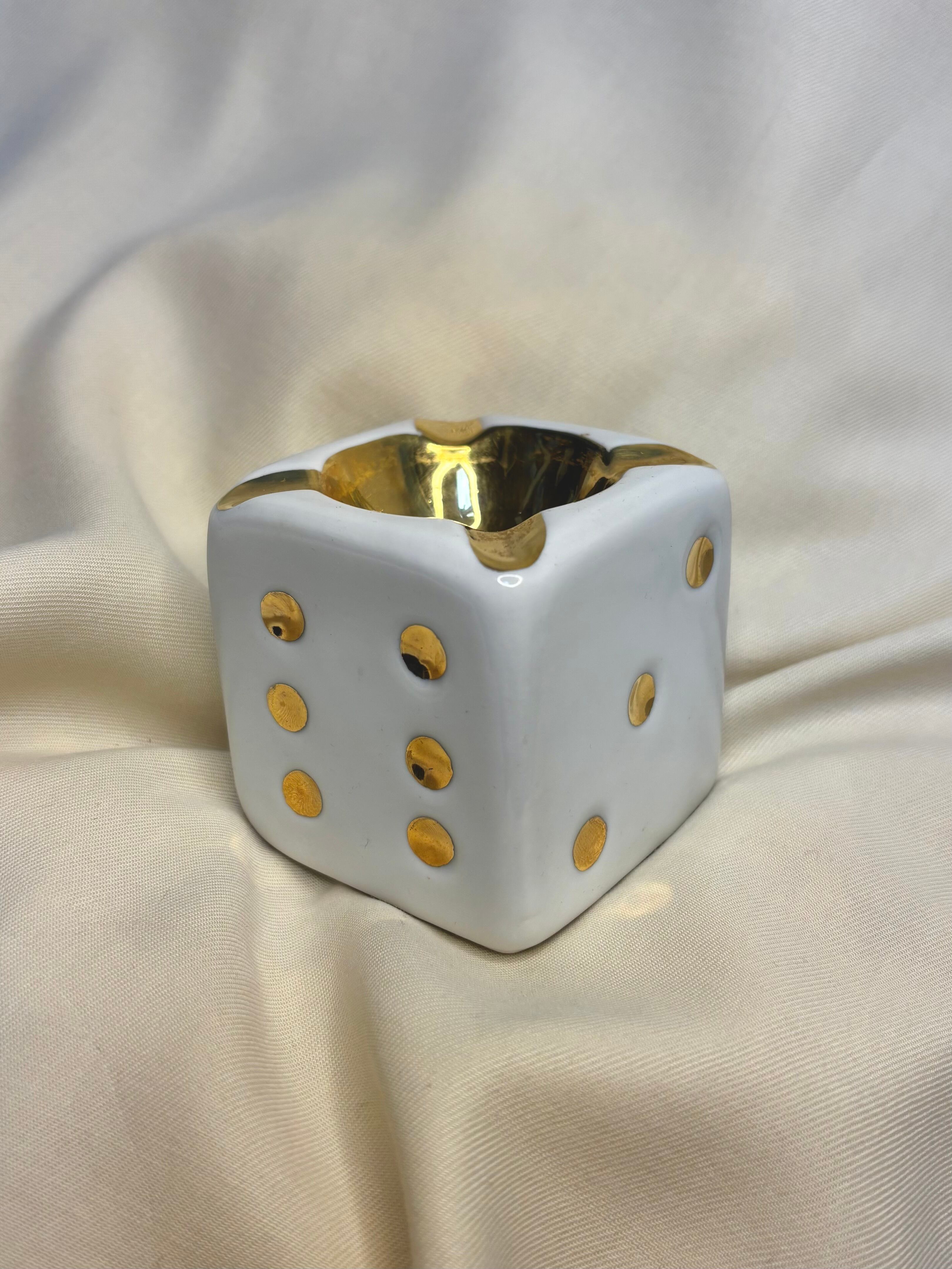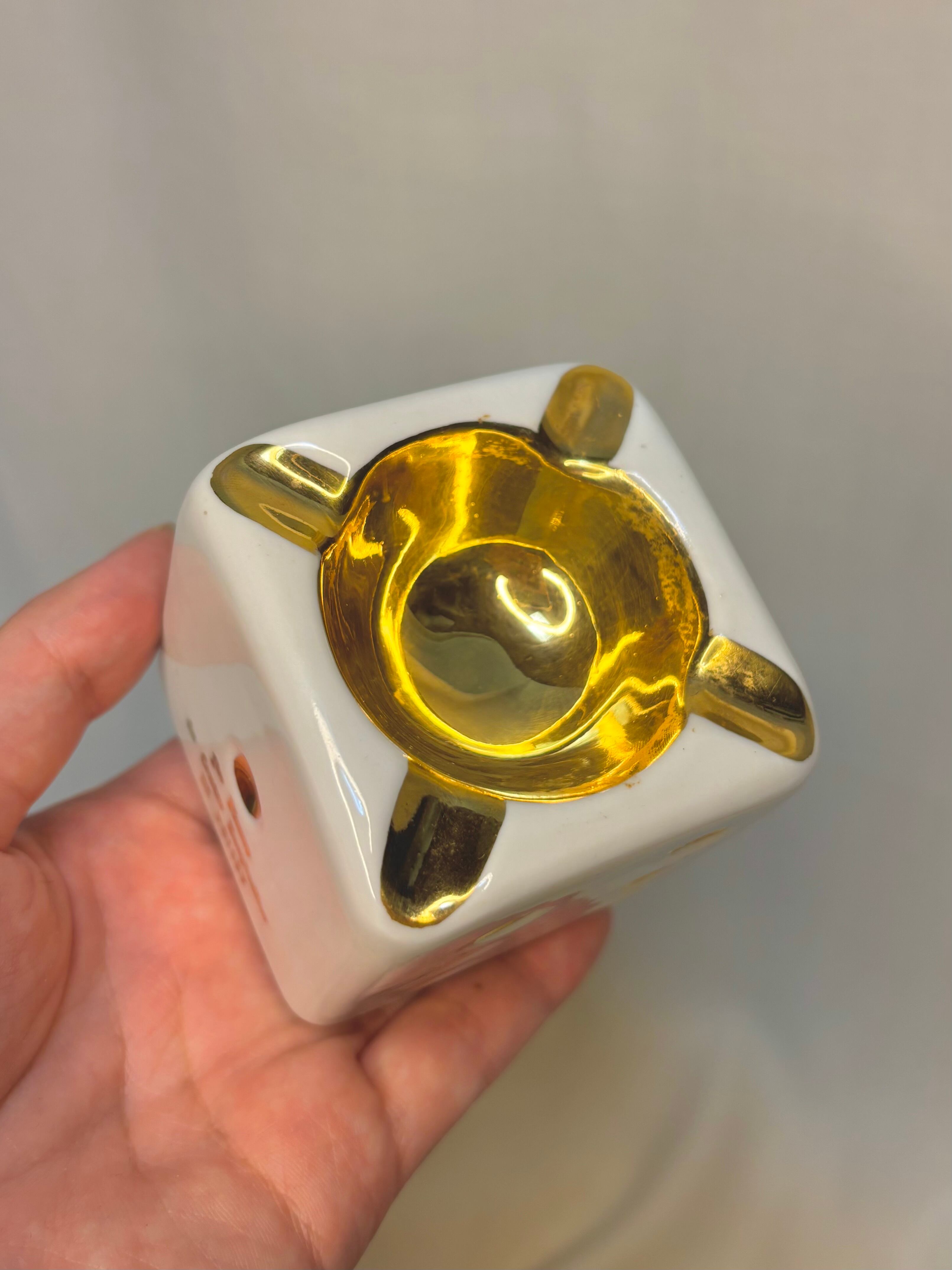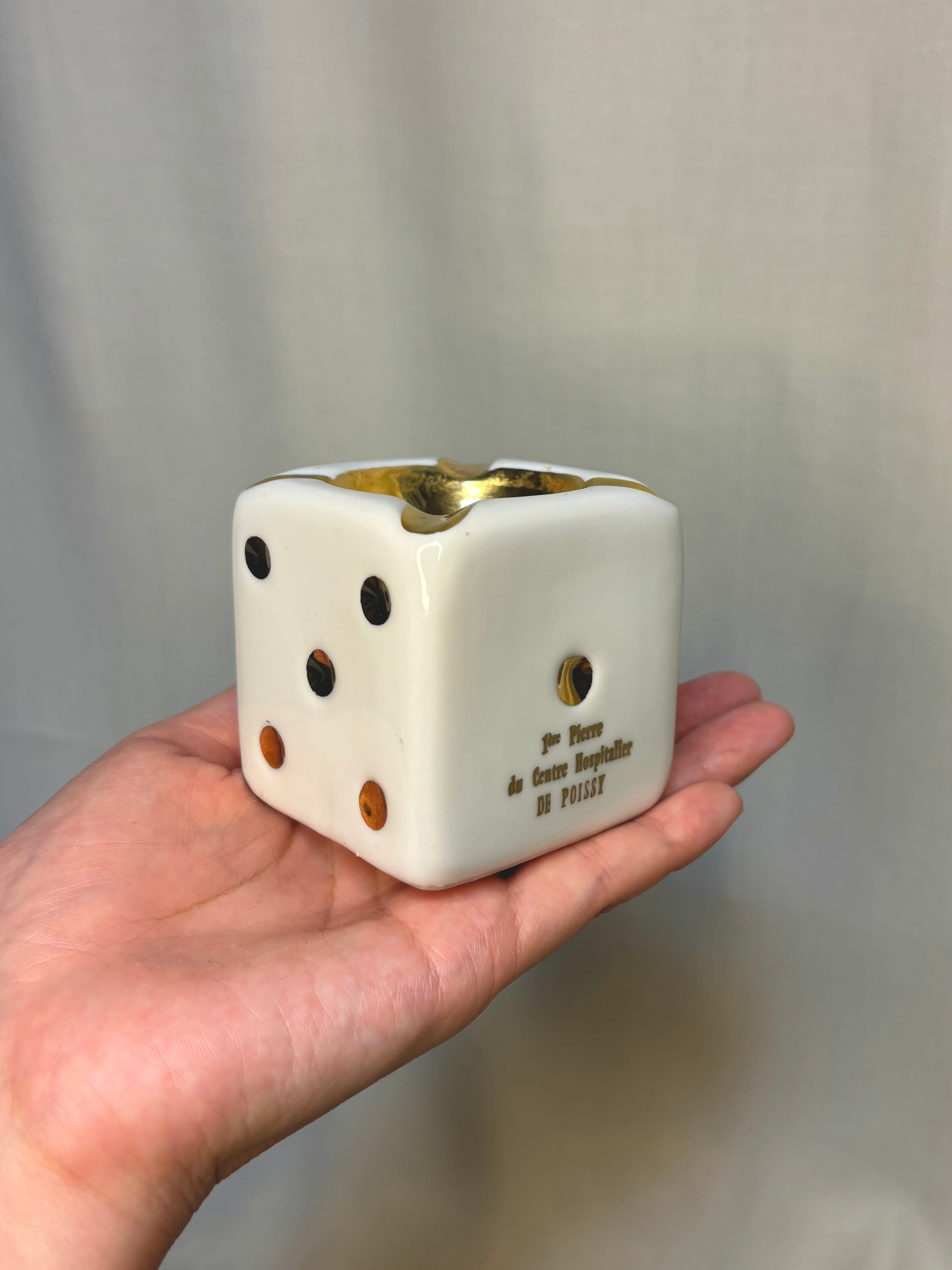 パリの蚤の市で見つけた、リングや小物を置くのに良さそうなサイコロの形の灰皿。