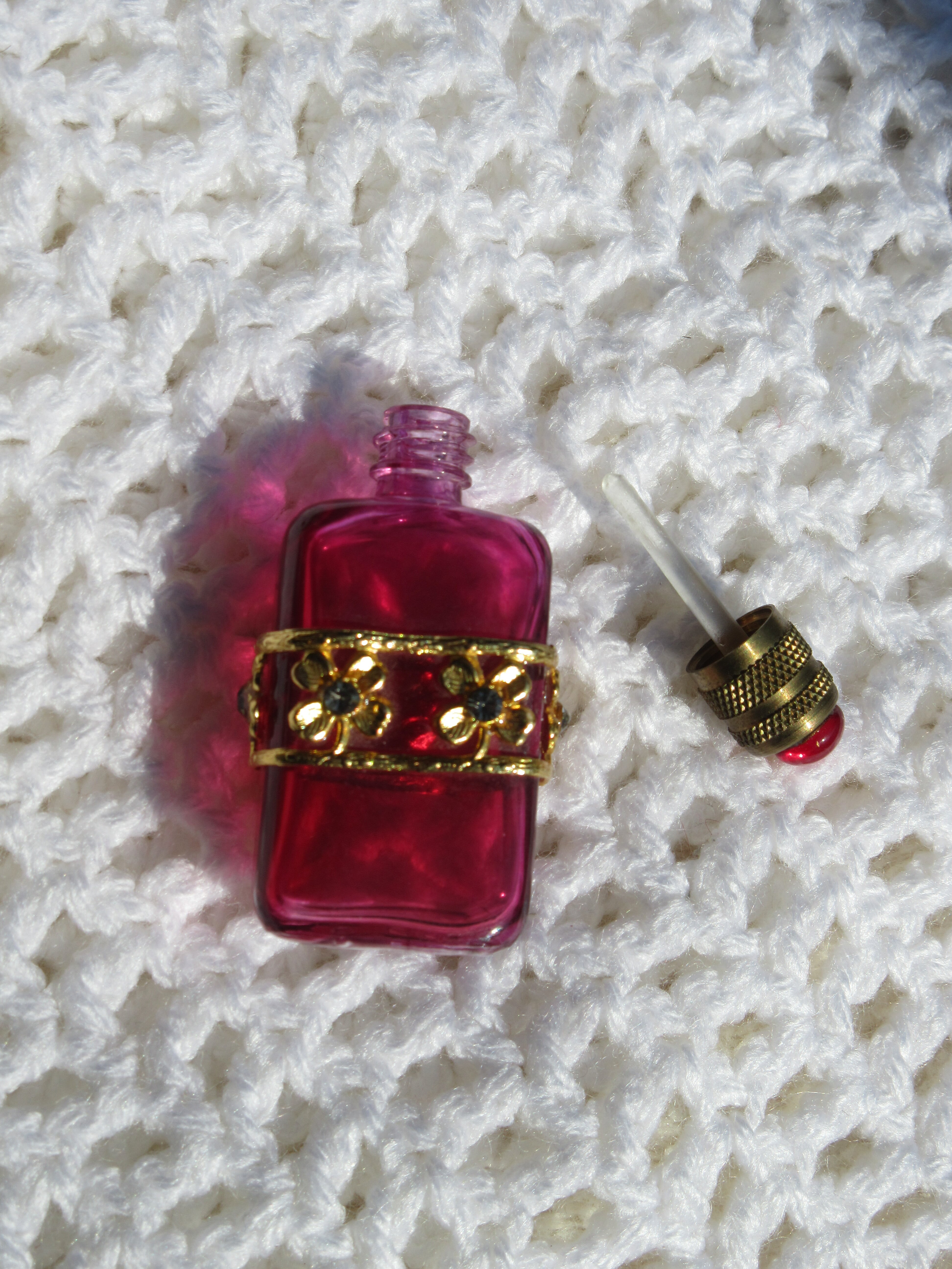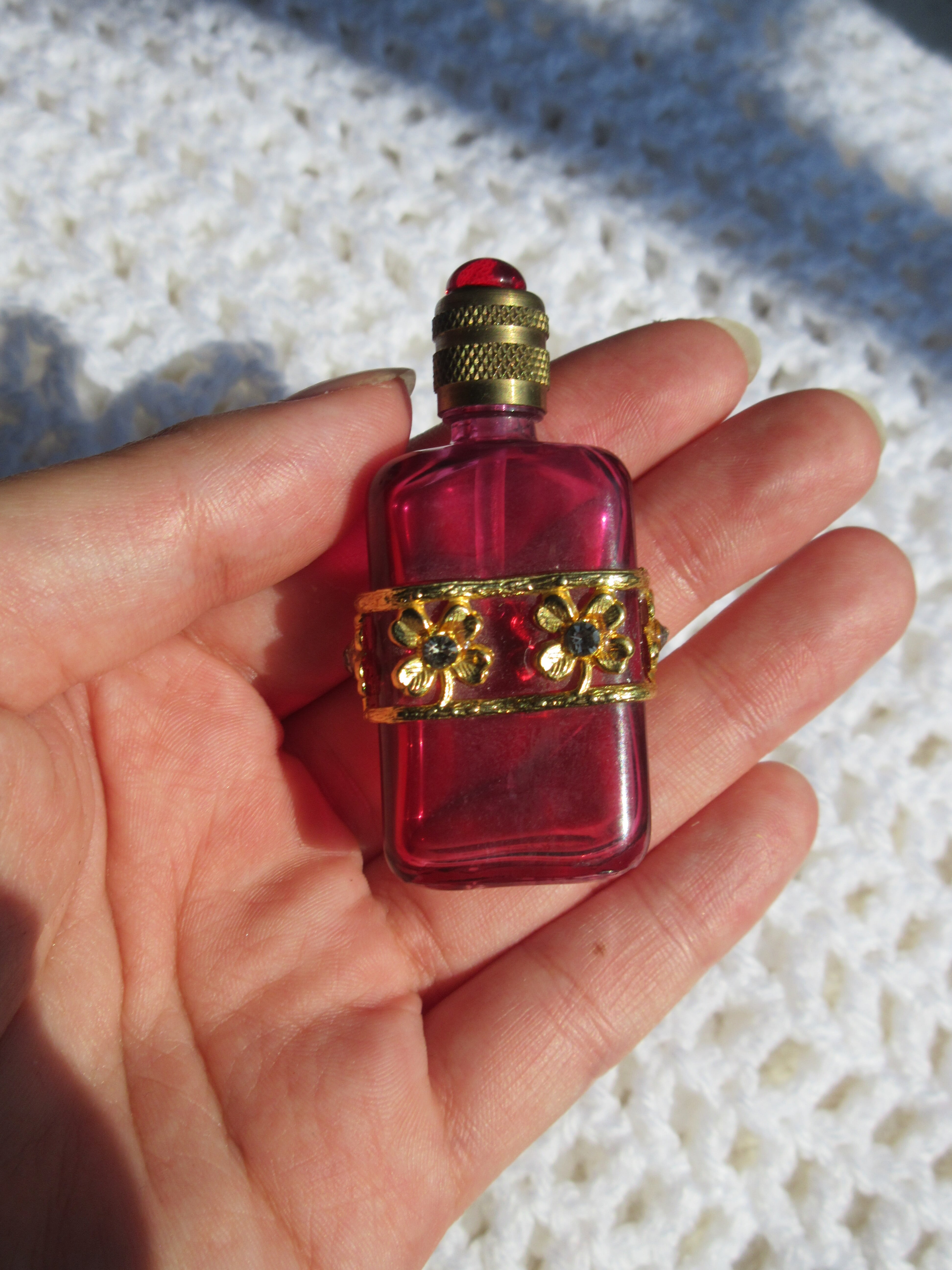 パリの蚤の市で見つけた、鮮やかなピンクのミニパフュームボトル。
